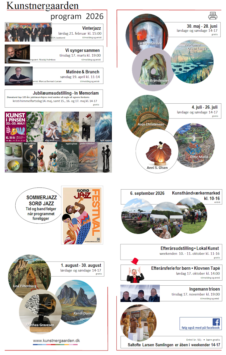 L�s mere om Kunst i Pinsen Udskriv program i pdf  (2 sider)                                           Scroll ned og find links til kunstnernes hjemmesider L�s mere om Sommerjazz L�s mere om Kunsth�ndv�rkermarked